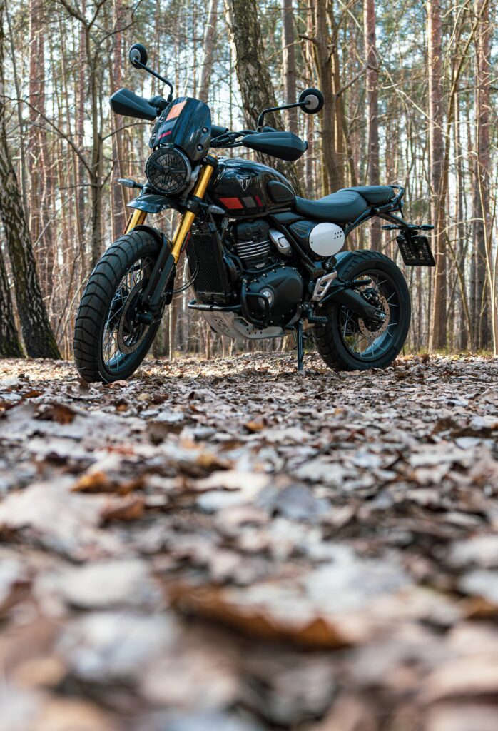 To ważne, bo klasyczny scrambler nie jest tym samym co dzisiejszy motocykl ADV. Historycznie scramblery były bliżej prostych, lekkich maszyn do zabawy poza asfaltem niż dalekobieżnych wyprawówek. Dziś wróciły głównie dzięki modzie na retro, ale dobra konstrukcja nadal zachowuje ten sam sens: ma być uniwersalna, lekka i gotowa na zjazd z utwardzonej drogi. W historii tego gatunku Triumph odegrał zresztą bardzo ważną rolę, bo to właśnie przerabiane modele tej marki mocno ukształtowały obraz scramblera, jaki dziś znamy.